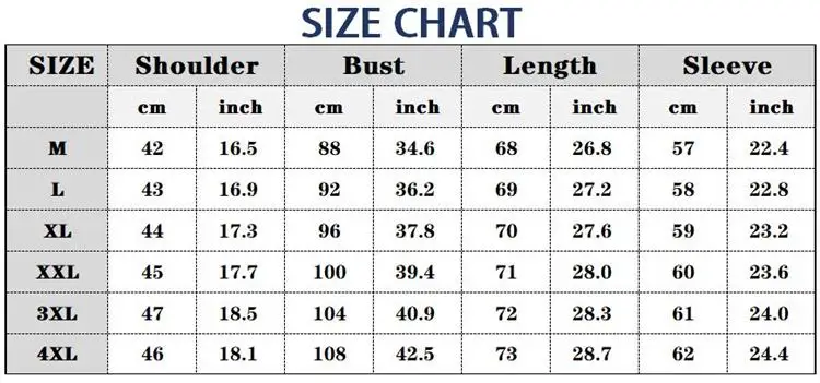 NOTE:If you are not sure about the size, please leave us your weight and height, chest and shoulder measurements. We can help you to choose the correct size.